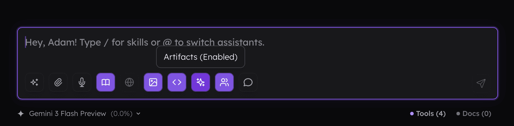 You can enable artifacts for the assistant in the settings or by using the sparkle button in the prompt input.